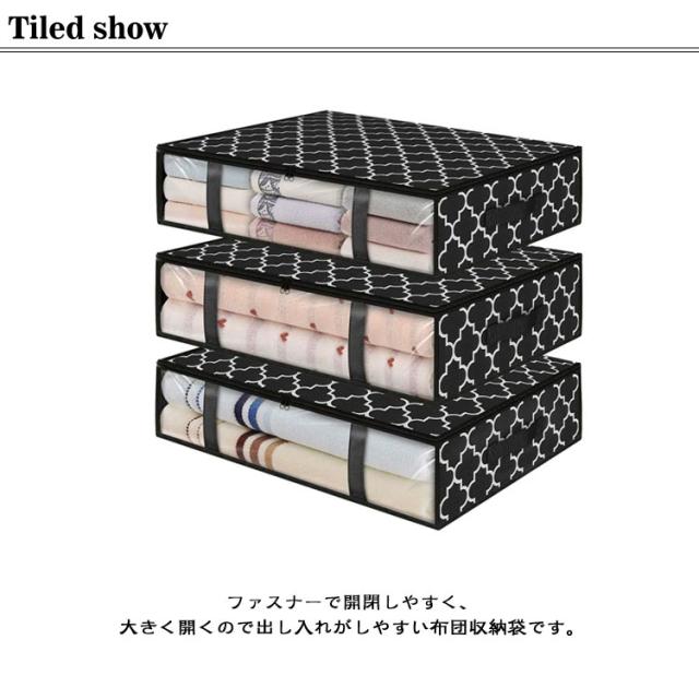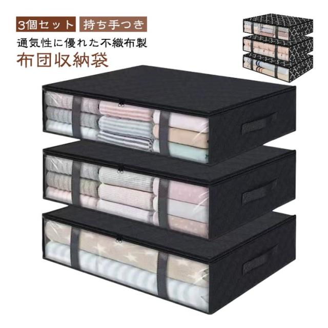 | 布団収納袋 3個セット 通気性に優れた不織布製 持ち手つき ファスナーで開閉しやすく、大きく開くので出し入れがしやすい布団収納袋です。 サイドが透明窓になっているので、中身が見えやすい。 厚手の不織布で作られており、防水性と通気性に優れているため、大切な衣類をホコリや湿気からしっかり守ります。 持ち運び便利な取っ手付きで、ベッド下などに置いても引き出しやすいところが便利なポイント。 家庭の旅行・出張・引越しにもおすすめで、重ねて収納することもできます。 | |
