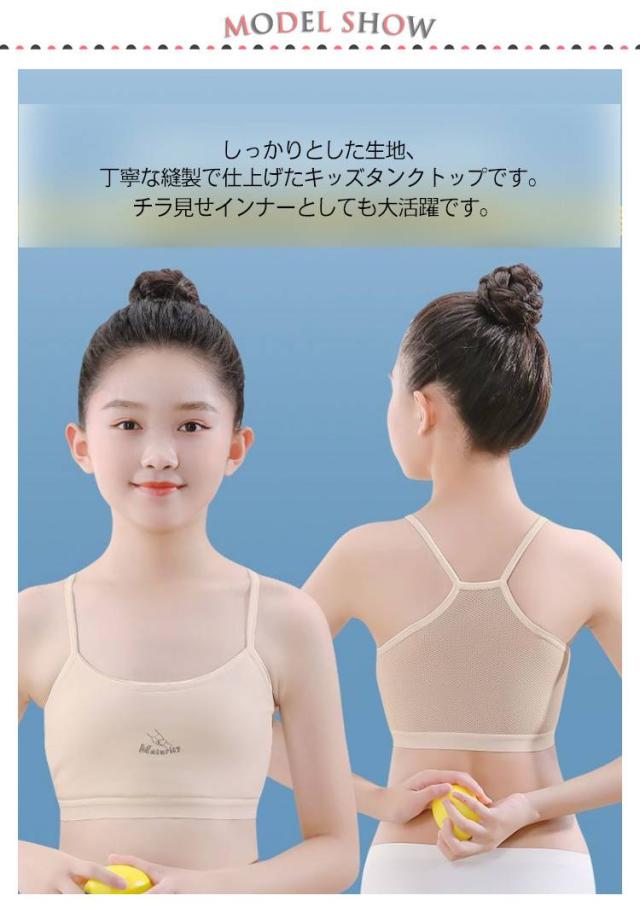 通気 インナー 中学生 可愛い キッズ 子供服 タンクトップ 女の子 チューブトップ 女児 トップス 肌着 キャミソール ノースリープ 小学生 2枚組 ジュニア向け アンダーウェア 吸湿 伸縮性 ノンワイヤー ブラジャー