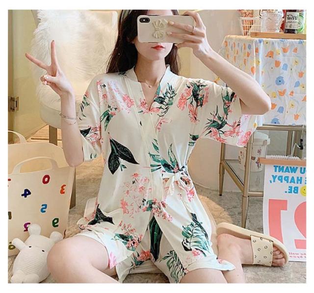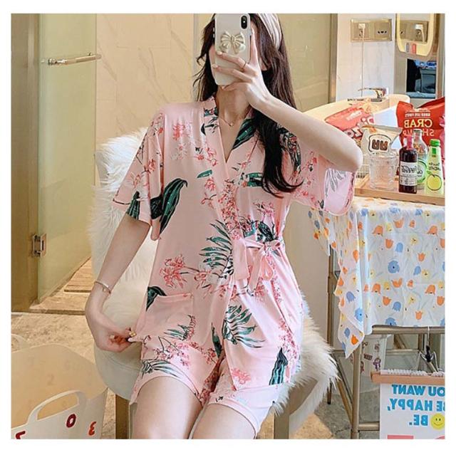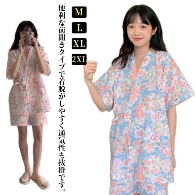 パジャマ ルームウェア 女性用 甚平 女性 レディース 浴衣 和風 五分袖 ホームウェア ナイトウェア 通気性花柄 パジャマ 寝間着 寝巻き 部屋着 ねまき お風呂 旅館 ホテル 春 上下セット 夏 秋 前開き 小花柄 さくら