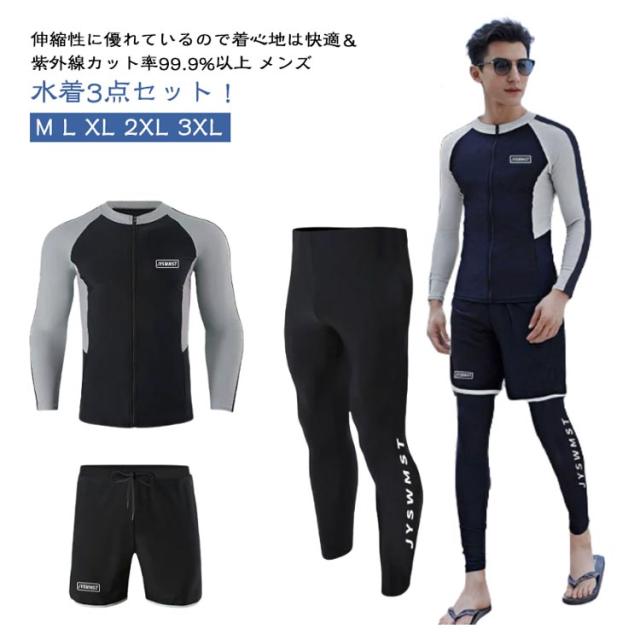 体型カバー メンズ 水着 ラッシュガード カップル トランクス 水着 上下セット 水着 ショートパンツ 3点セット 競泳 競泳水着 練習用 フィットネス水着 セット uv対策 レギンス uvカット UVパーカー 紫外線対策