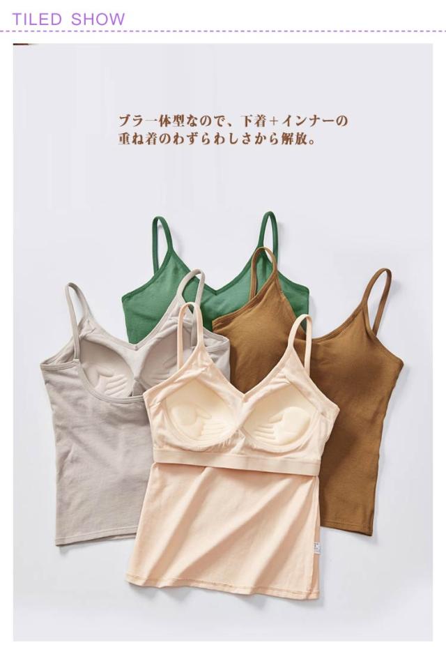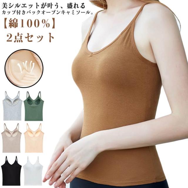 インナー 春 ブラキャミ カップ付き 2点 バックオープン セット 下着 レディース キャミソール 盛れる ブラキャミソール ブラジャー ホールド タンクトップ 通気性 軽い 蒸れない アンダーゴム ブラトップ 美胸 パッド付き コットン ストレッチ 綿100% 夏 秋