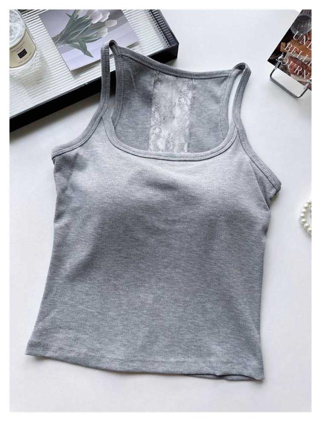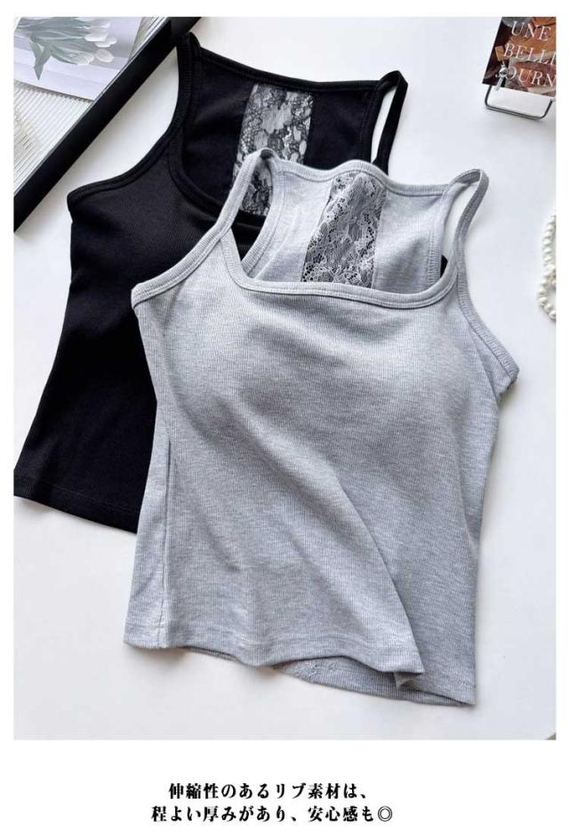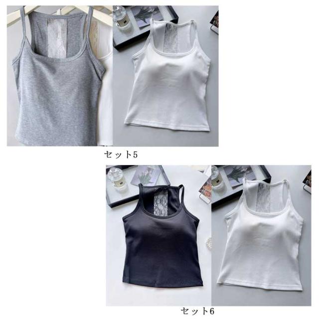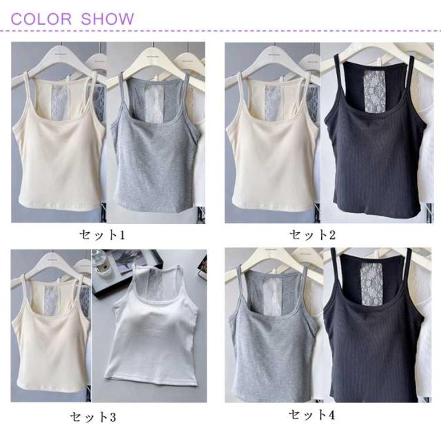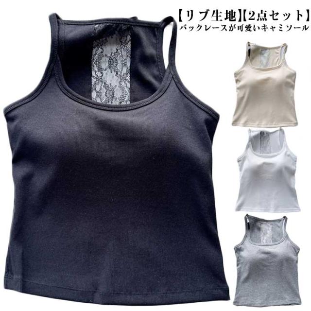 ブラキャミソール タンクトップ リブ 2点セット レース 下着 カップ付き 2点セット レディース 透けない インナー ブラジャー ブラトップ ブラキャミ パッド バックレース 通気性 スクエアネック 蒸れない ストレッチ ノーワイヤー 春 夏 秋 トップス