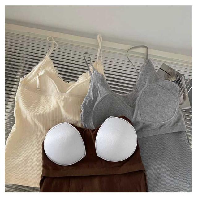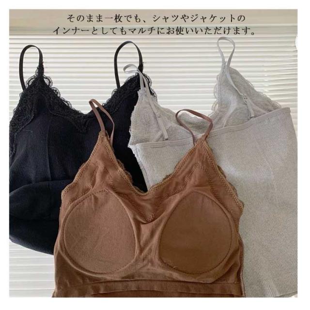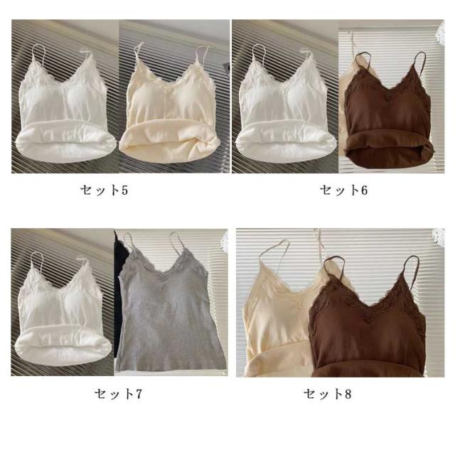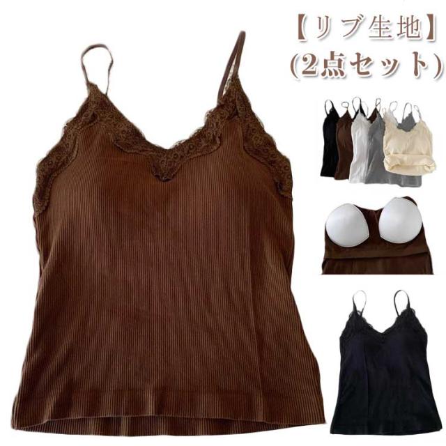 セット パッド 秋 キャミソール 下着 透けない リブ カップ付き ブラキャミ レディース インナー レース ブラキャミソール ブラジャー タンクトップ 2点 胸元レース 通気性 Vネック 蒸れない ストレッチ ノーワイヤー 春 夏 2点 トップス 大人可愛い
