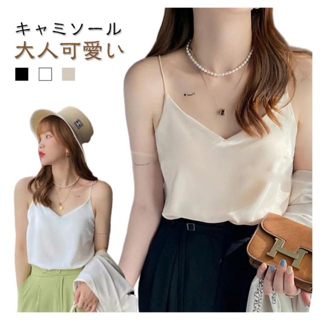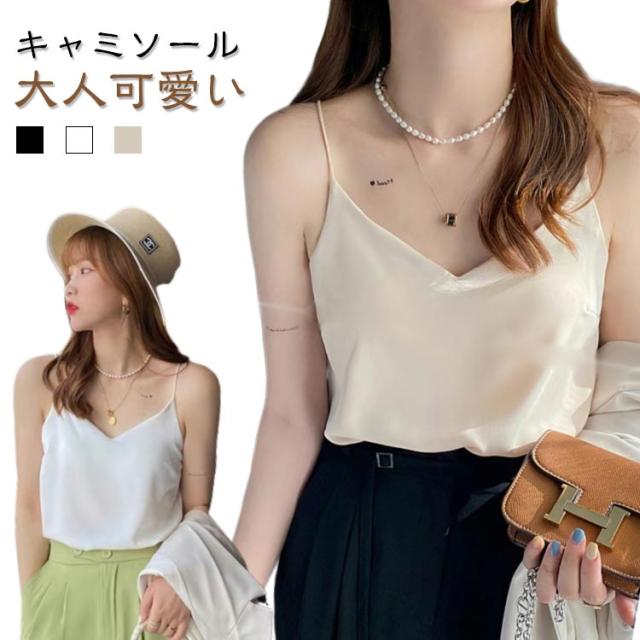 サテン カップ付き インナー ブラキャミ ブラトップ キャミソール タンクトップ ブラキャミソール 下着 春 接触冷感 夏 パッド付き 光沢感 サテンキャミソール Vネック 透けない 蒸れない 大人可愛い きれいめ フェミニン カップ付き 大きいサイズ 【送無】