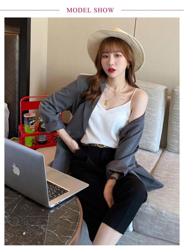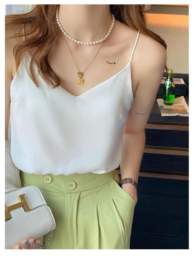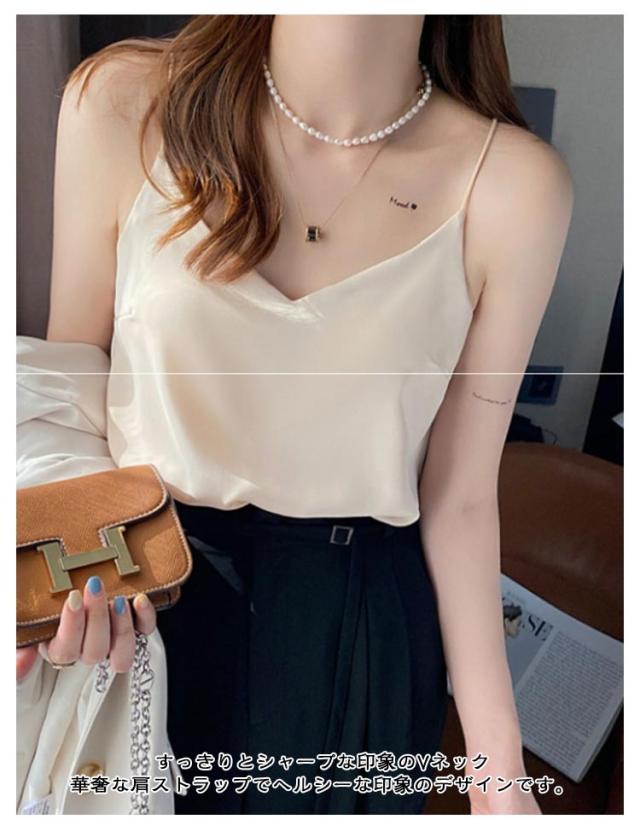 | カップ付きで着心地抜群なサテンキャミソールはサラッと涼しく春夏に重宝する1枚。 程よいツヤ感が大人の上品さを演出。柔らかく滑らかな風合いが女性らしさ溢れるサテン素材です。 すっきりとシャープな印象のVネック 華奢な肩ストラップでヘルシーな印象のデザインです。 カップ付きでストレスフリーな着心地もポイントです。 ジャケットやシャツのインナーに着るだけでトレンド感のあるスタイリングに仕上がります。 | |