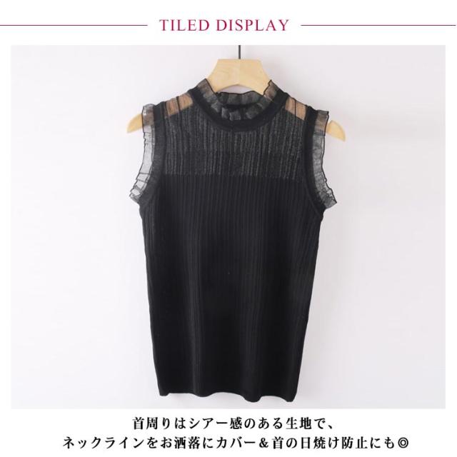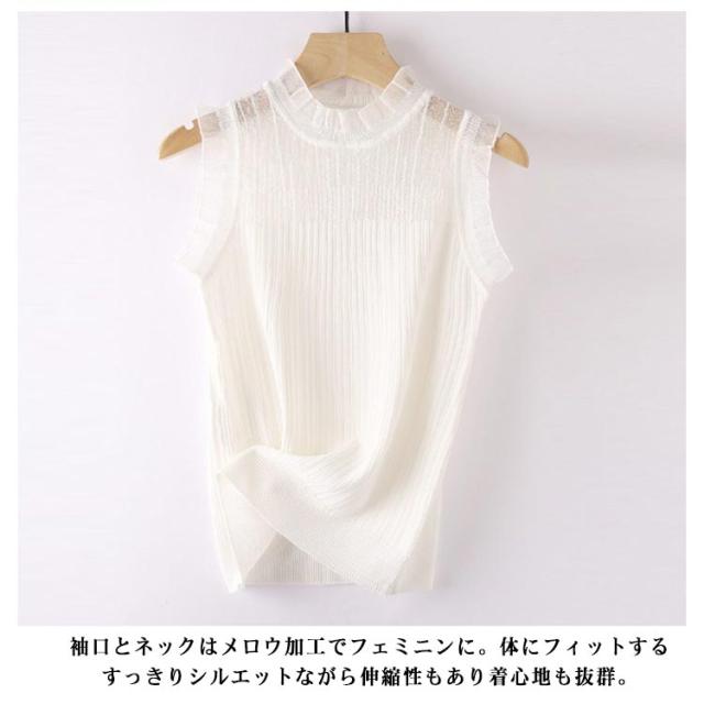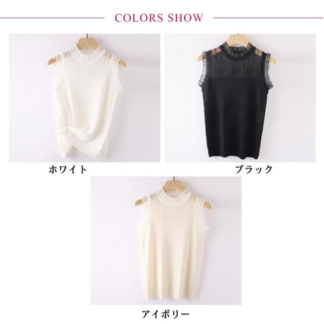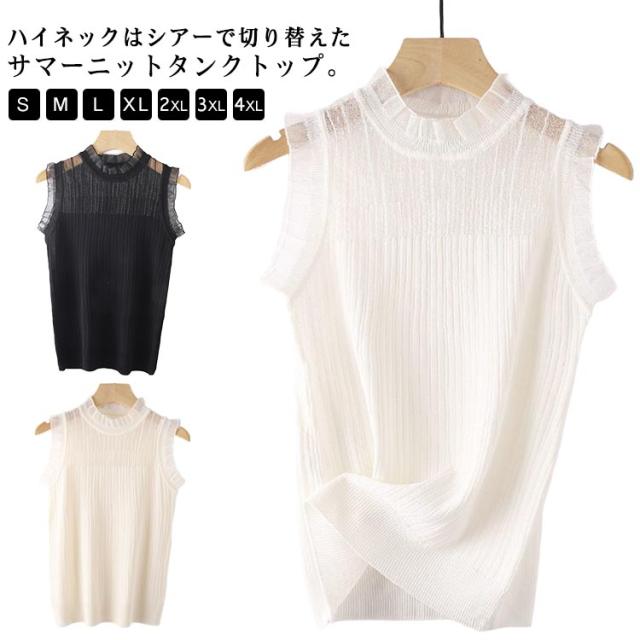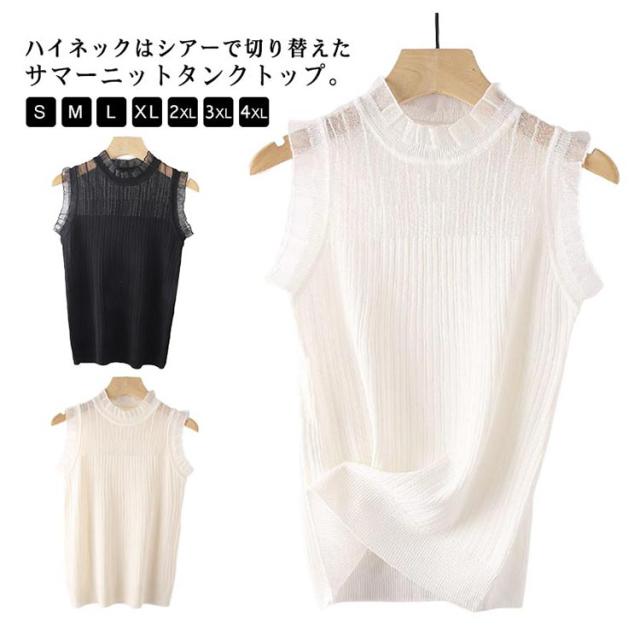 タンクトップ シアー レディース サマーニット ノースリーブ トップス ハイネック 大人可愛い ニットタンクトップ メロン 透け感 夏 大きいサイズ きれいめ 春 秋 ブラウス 袖なし タンクトップ 薄手 タンク ニット おしゃれ 母の日 プレゼント 【送無】