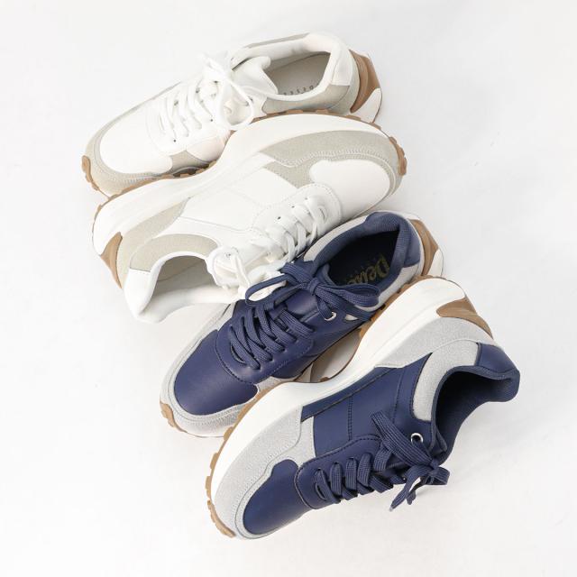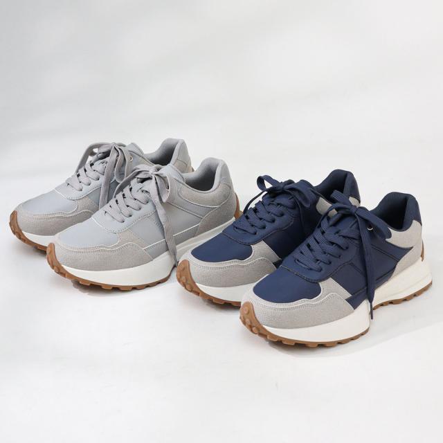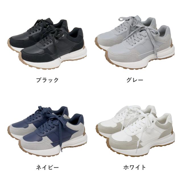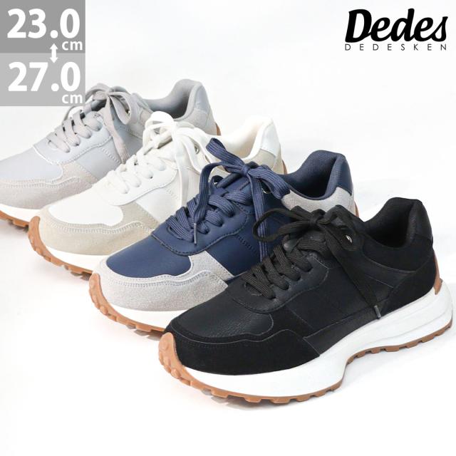 【返品交換不可】ローカットスニーカー メンズ レースアップ 3E スポーティー 小さいサイズ 大きいサイズ ユニセックス 合皮 スエード 異素材MIX 3cmヒール No.6397 23cm-27cm Dedes デデス