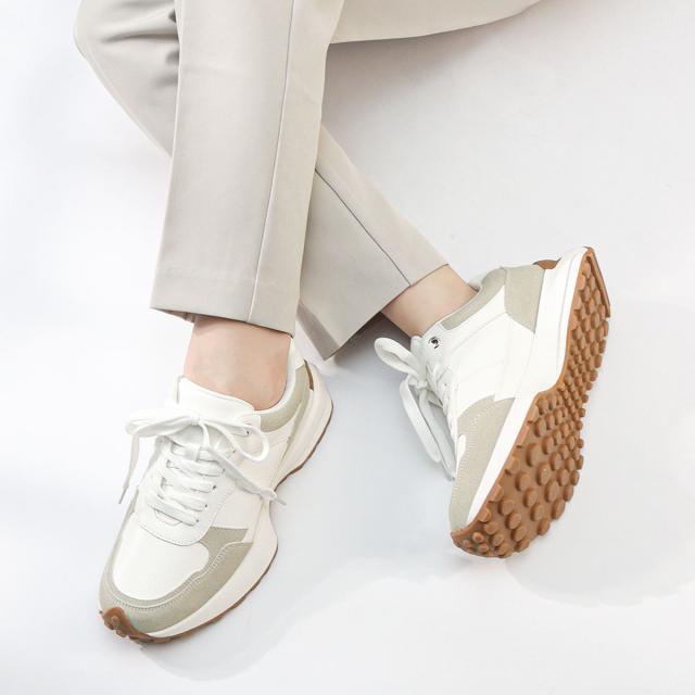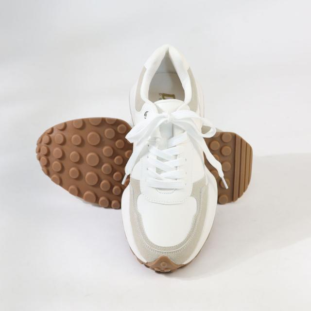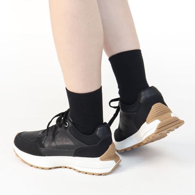 飴色の靴底に白のミッドソールというユニークな配色が、足元にレトロな雰囲気を演出します。