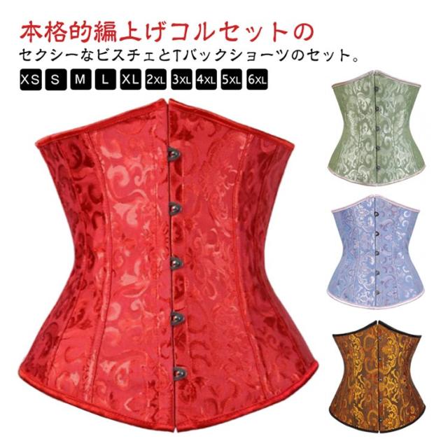 | サイズについての説明 | ■セット内容:コルセット本体、コルセットとお揃いのTバックショーツ付き ※上記サイズは平置き実寸になります。 サイズ表の実寸法は商品によって1-3cm程度の誤差がある場合がございます。単位:cm) |