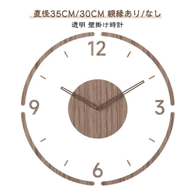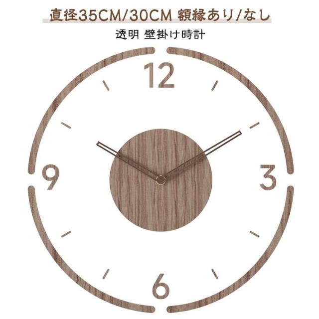 掛け時計 透明 壁掛け時計 木製 額縁なし おしゃれ クロック かけ時計 軽量 透明 静音 時計 北欧 かべ掛け時計 壁掛け 掛時計 お洒落 かわいい シンプル 大きい 静か 音がしない 額縁あり オシャレ 木目調 プレゼント ギフト 寝室 ダイニング