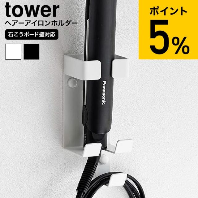 山崎実業 tower ウォールヘアーアイロンホルダー タワー 石こうボード壁対応 公式 1345 1346 ホワイト ブラック ヘアアイロン 収納 スタンド 洗面所 浮かせる収納 壁面収納 yamazaki タワーシリーズ JGS