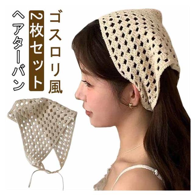 三角巾 大人っぽい バンダナ カチューシャ レディース ヘアアレンジ 髪飾り 可愛い ヘアドレス スカーフ 韓国 ボヘミアン 頭巾 透け感 薄手 おしゃれ ヘアアクセサリー 2枚セット 春夏 普段使い 森ガール ゴスロリ風 ガールズ