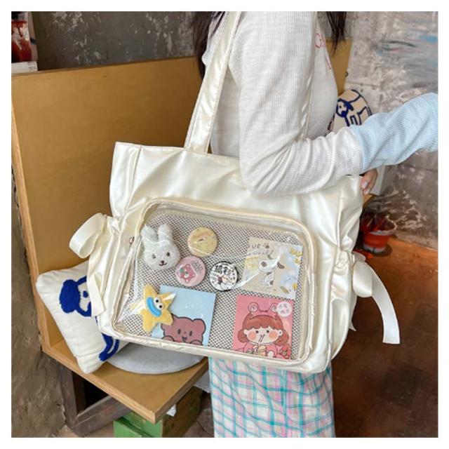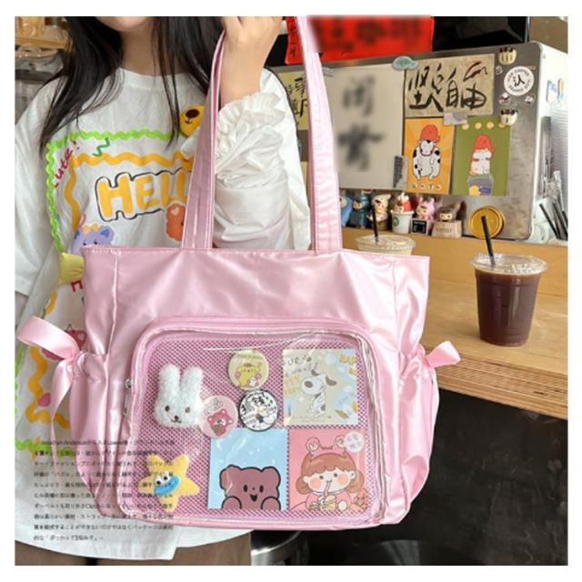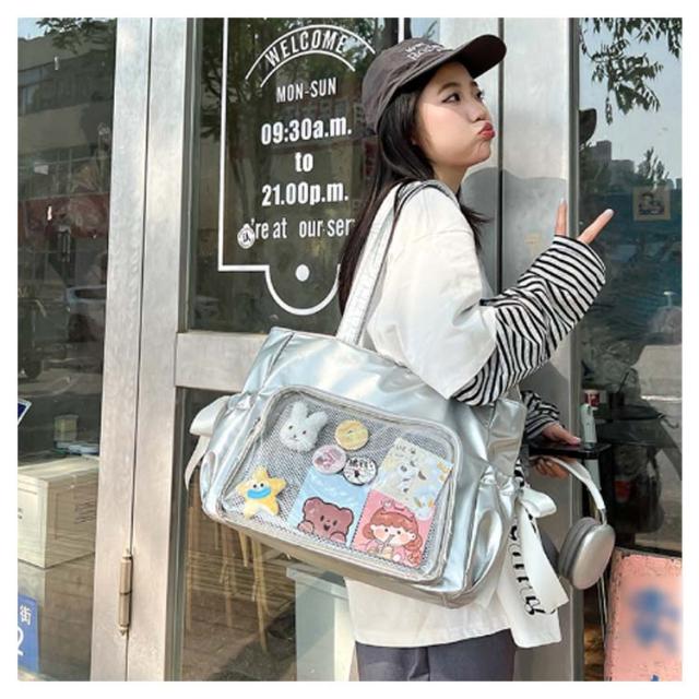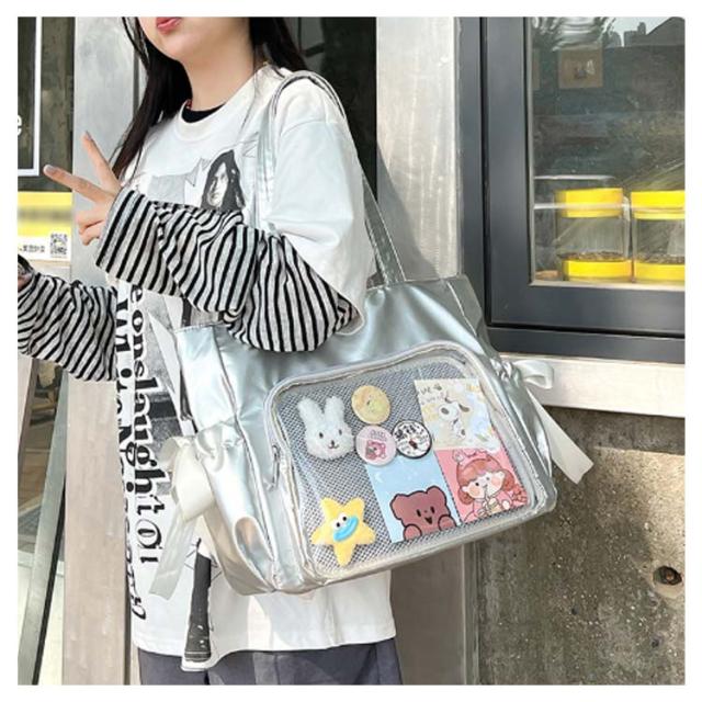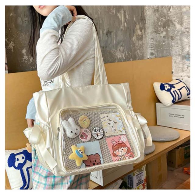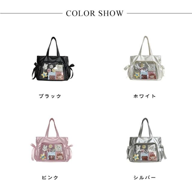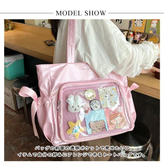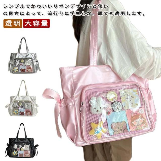 サイドポケット バッジボード付き 痛バッグ トートバッグ メッシュボード トート 透明 痛バッグ ショルダーバッグ A4 痛バ 痛リュック トート クリアバッグ 見せバッグ 透明 ビニール スクール バッグ トートバッグ 痛バ リボン ショルダー 斜めがけ 大容量通学 通勤