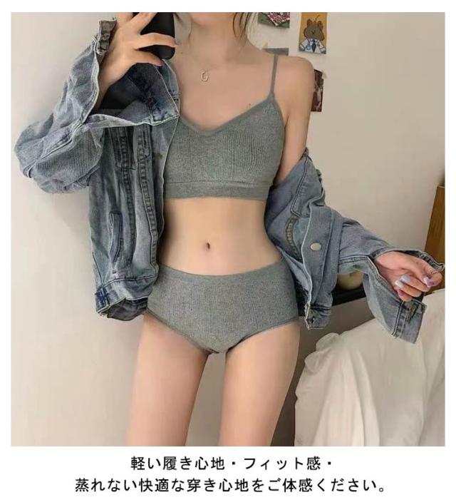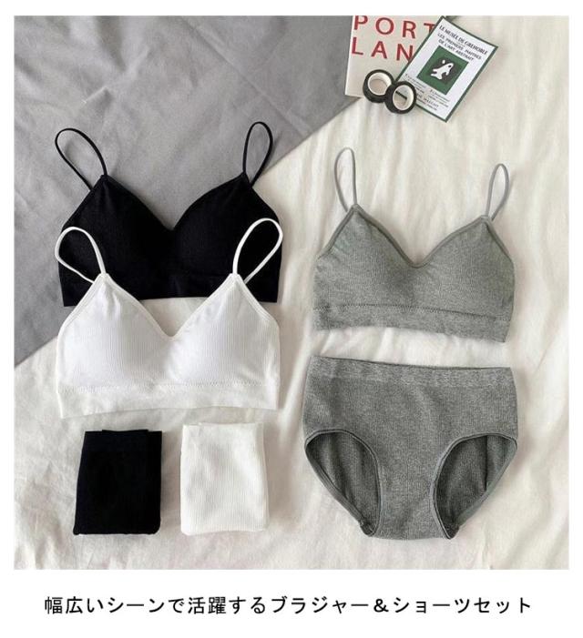 ブラジャー&ショーツセット 運動 ノンワイヤーブラ 女の子 ブラジャー&ショーツセット 下着 ジュニアブラジャー レディース 学生 シンプル パッド付き スポーツブラ キャミソール 無地 セットアップ ヨガ フィットネス 快適 ストレスフリー 育乳ブラ 中学生 高校生