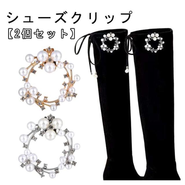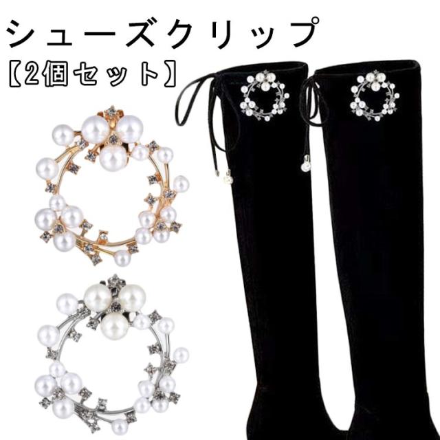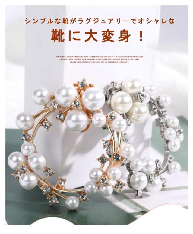 V字デザイン シューズ シューズクリップ アクセサリー イベント パンプス 靴 パール 2個組 結婚式 パンプス V字 着せ替え 2個セット 発表会 キラキラ シューズクリップ ウエディング