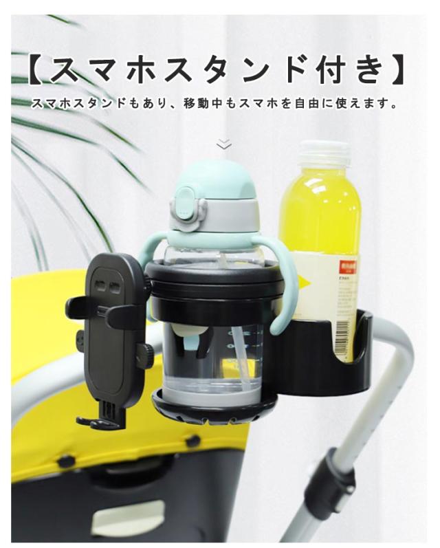 収納便利 ボトルホルダー 3in1 哺乳瓶 ベビーカー ドリンクホルダー 飲み物 カップホルダー 携帯電話収納 キッズ 2個対応 ボトルホルダー 360度回転 角度調整可 ベビーカー ホルダー 自転車 取り付け ベビー 赤ちゃん
