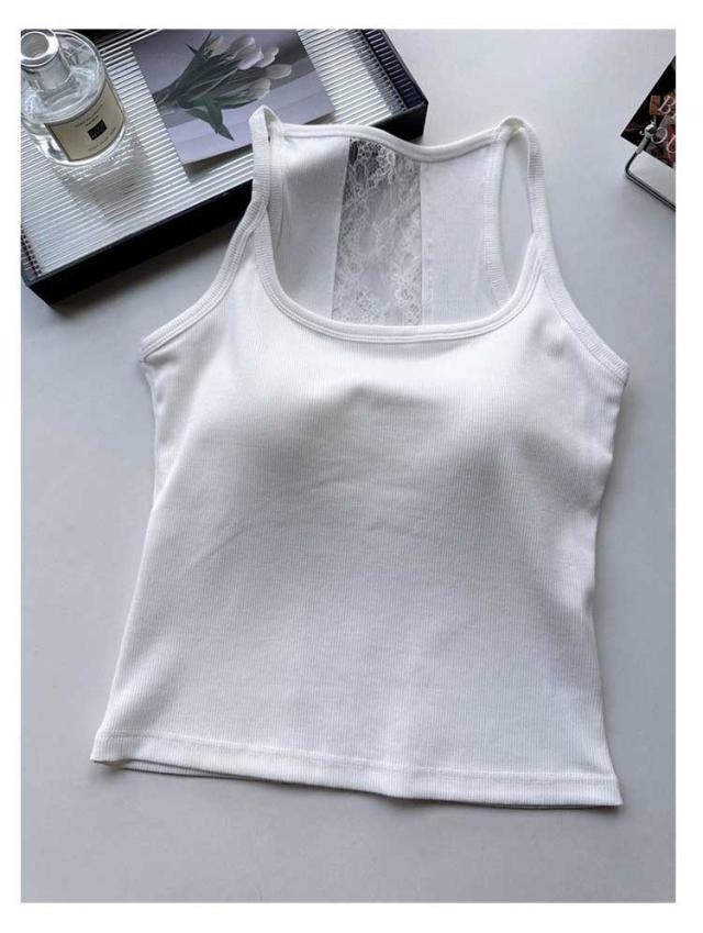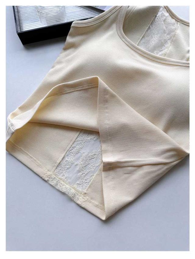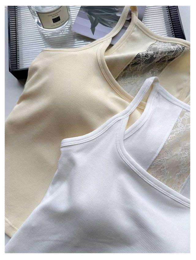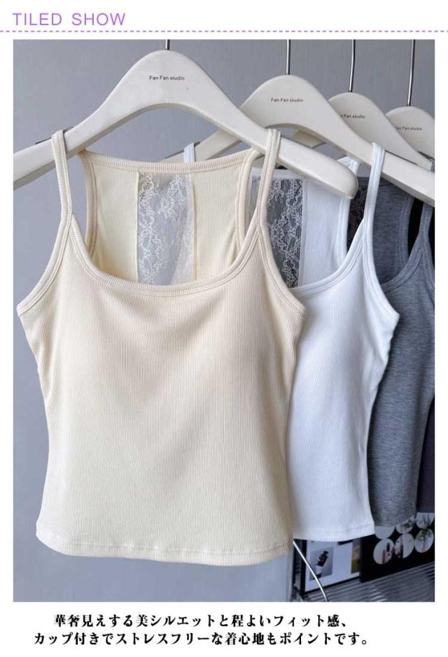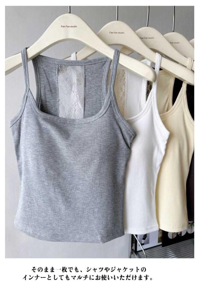 タンクトップ 2点セット ブラキャミソール リブ 2点セット スクエアネック レース カップ付き レディース ブラキャミ インナー キャミソール ブラジャー 下着 パッド バックレース 通気性 透けない 蒸れない ブラトップ ノーワイヤー 春 夏 秋 トップス