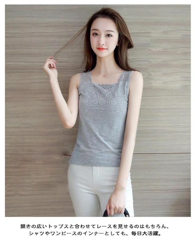 2点セット セット スクエアネック 2点セット インナー フェミニン キャミソール 肩紐レース レディース キャミ 下着 通気性 透けない 蒸れない 秋 夏 春 肌着 レディースインナー 大人可愛い きれいめ 胸元レース 母の日 プレゼント 黒 白