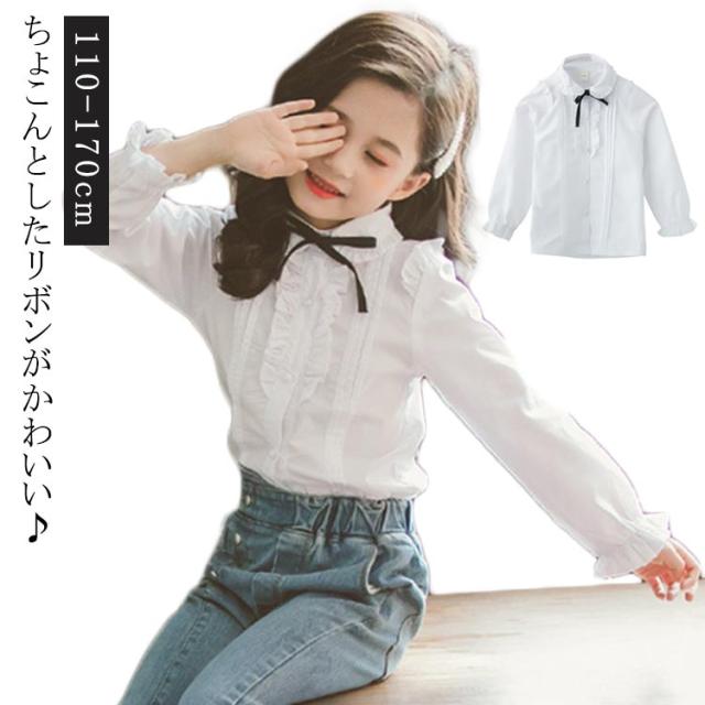 ブラウス フォーマルブラウス 女の子 おしゃれ トップス 入学式スーツ 女の子 白 ブラウス ブラウス 学生 キッズ 女の子 卒業式 シャツ 長袖 子供服 フリル襟 スクール シャツ ワイシャツ 大きいサイズ リボン付 入学式 ブラウス 発表会 結婚式 発表会 結婚式 記念日