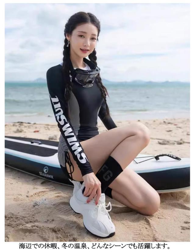 | シンプルなワンピースタイプの水着。 一枚で着用OK♪クラゲや日焼け対策にぴったりな丈感! 気になる汗をサッと吸収して拡散、すぐ乾く吸汗・速乾素材。 パッドが付きなので胸をしっかり支え、バストアップ効果がある。インナーなしでも安心して着用できる。 A字型のワンピースデザインが体型をカバーしてお尻とお腹周りを隠しつつ、パンツ付きも安心感がある。 海辺での休暇、冬の温泉、どんなシーンでも活躍します。 | |