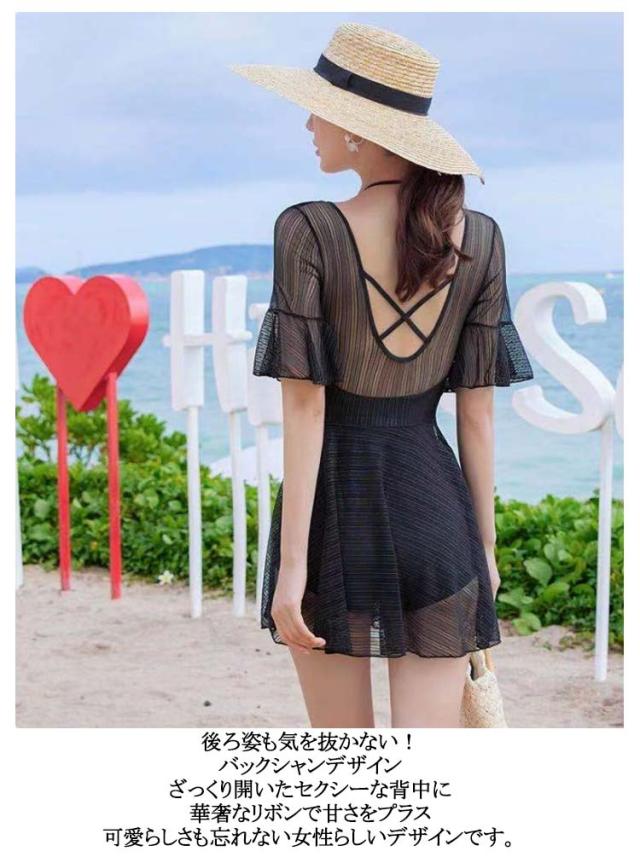 50代 体型カバー水着 30代 20代 オールインワン ミセス ワンピース水着 40代 レディース 60代 ワンピース水着 可愛い ぽっちゃり ママ水着 カバーアップ バックシャン 大きいサイズ 黒 お腹 お尻 太ももカバー出来る ショートパンツ一体型
