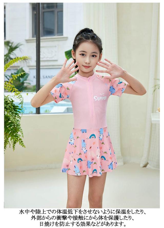 水着 女の子 ワンピース ワンピース 半袖 子供 スクール子供水着 キッズ 120 ラッシュガード パッド取り付け外し可 150 中学生水着 女子 半袖 140 みずぎ スイミング 130 スイムウェア スイミング 海水浴 水遊び 日焼け止め 女の子 ピンク