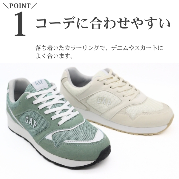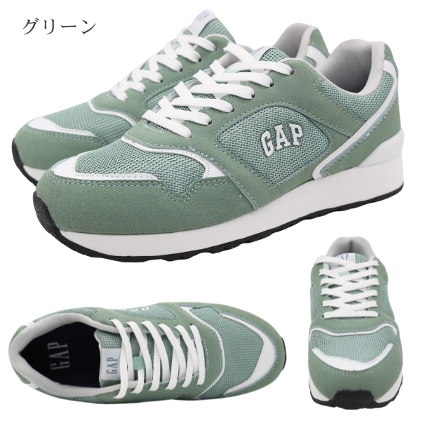 スニーカー レディース 靴 シューズ 白 オフホワイト 緑 グリーン スエード 春 通勤 通学 軽い 軽量 おしゃれ 履きやすい 歩きやすい 疲れない 人気 ブランド クッション GAP ギャップ GPU12511 ギフト
