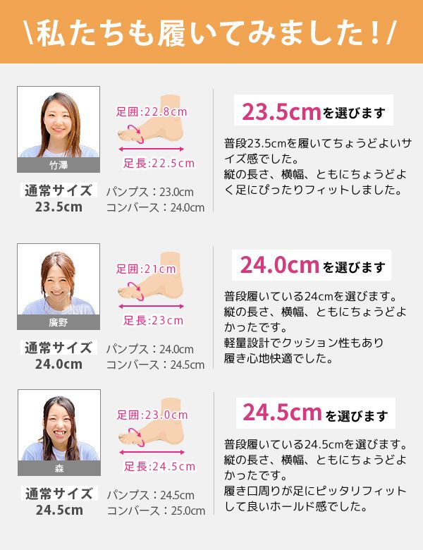 取り扱いサイズ:23cm 23.5cm 24cm 24.5cm