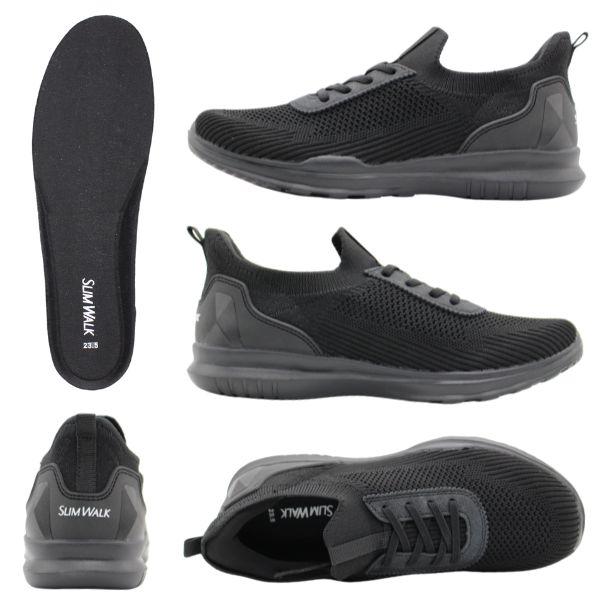 SLIM WALK スリッポン レディース 靴 スニーカー 黒 ブラック 白 ホワイト 軽量 軽い ハンズフリー 妊婦 腰痛 主婦 子育て サッと履ける 履きやすい 手を使わない 疲れない 歩きやすい 履きやすい 美脚 スリムウォーク ギフト プレゼント SW20065 ギフト