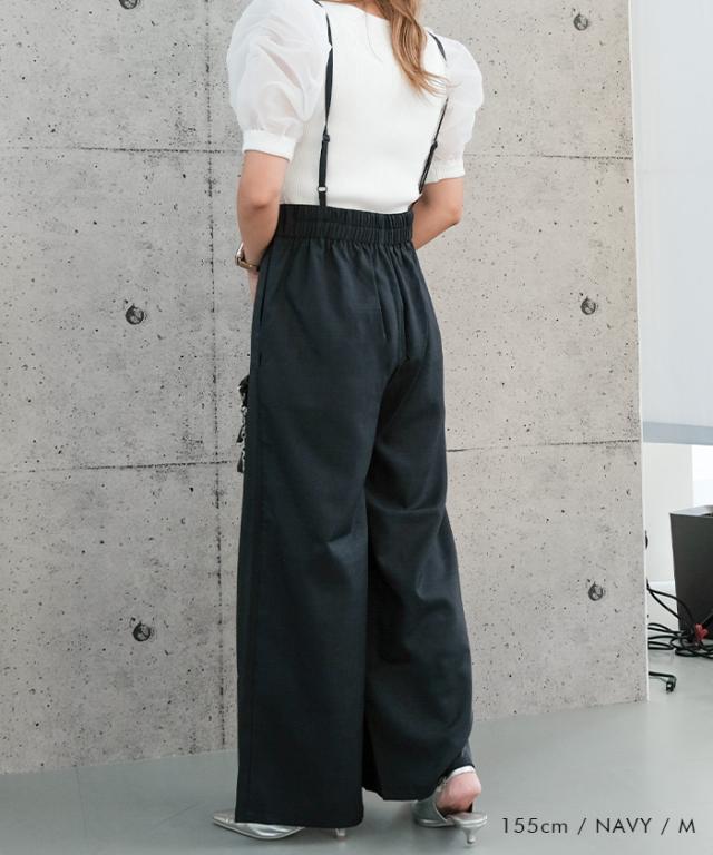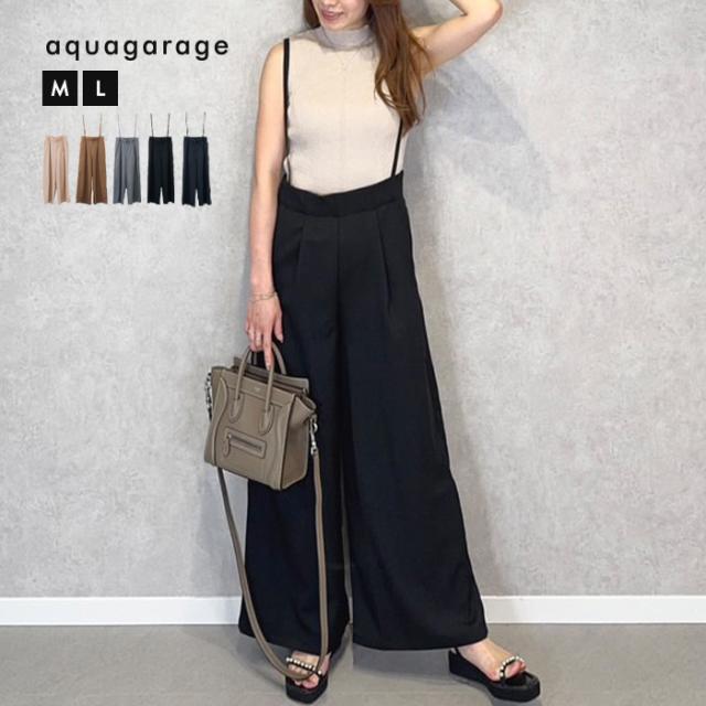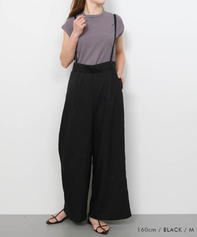 ≪ゆうメール便配送30・代引不可≫ リネンライクサスペンダー付きパンツ レディース 春 夏 秋 M アガレージ aquagarage