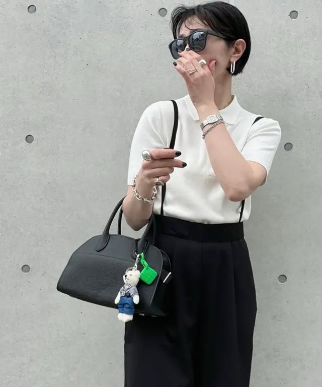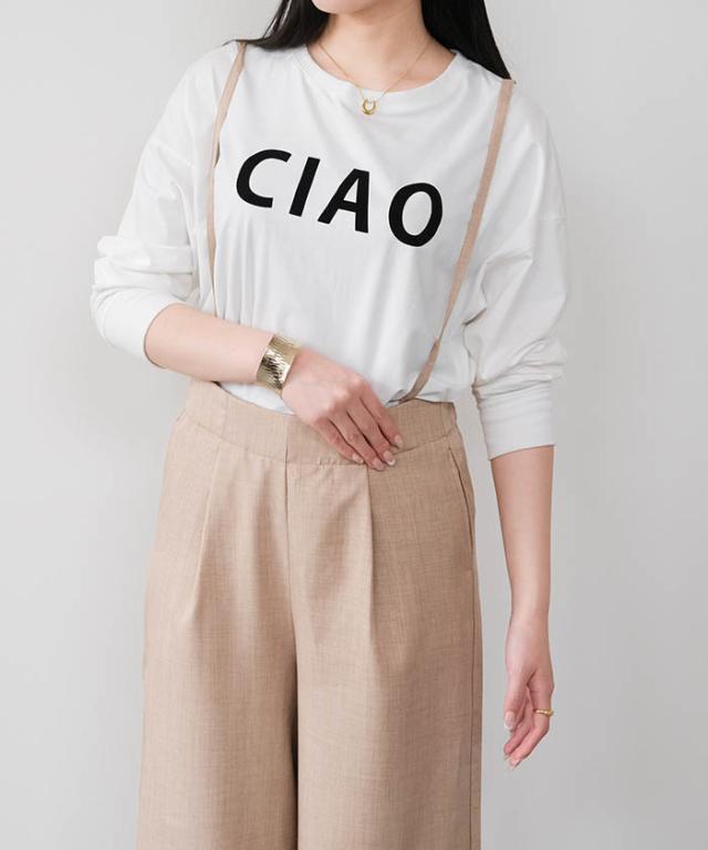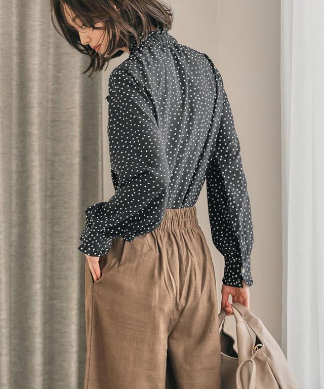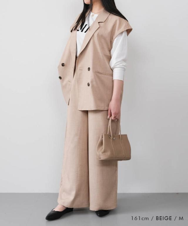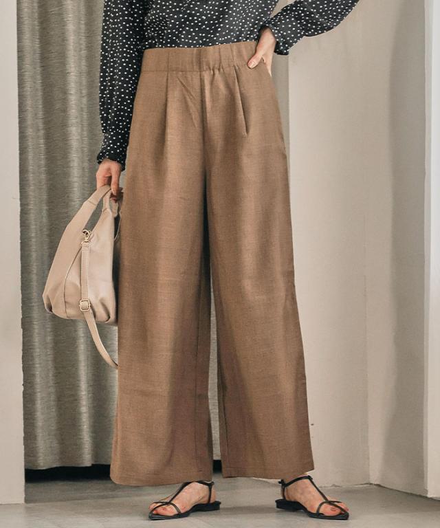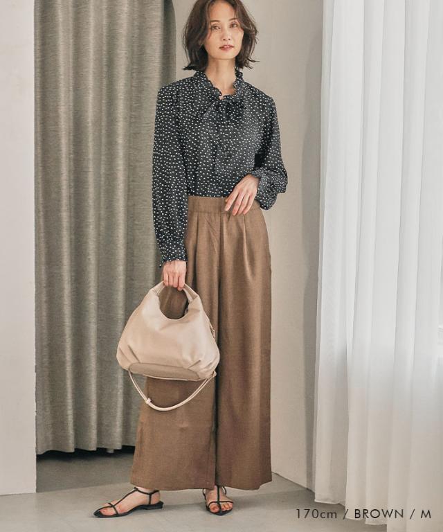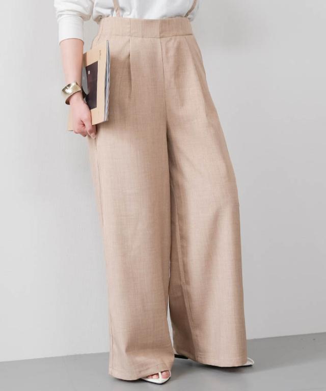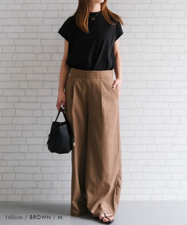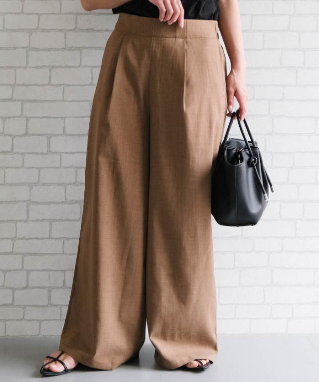 体型カバーもできる程よいワイドパンツのシルエットは、大人のきれいめな着こなしにマッチ。
