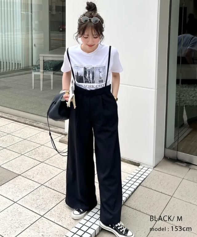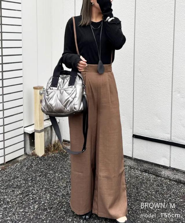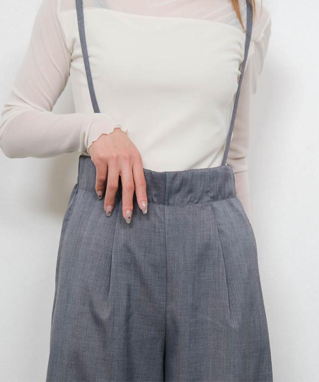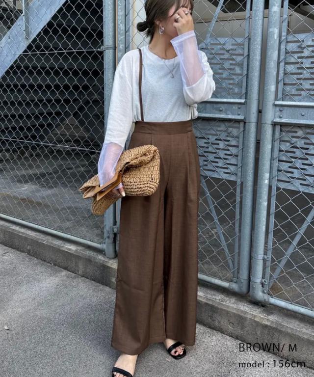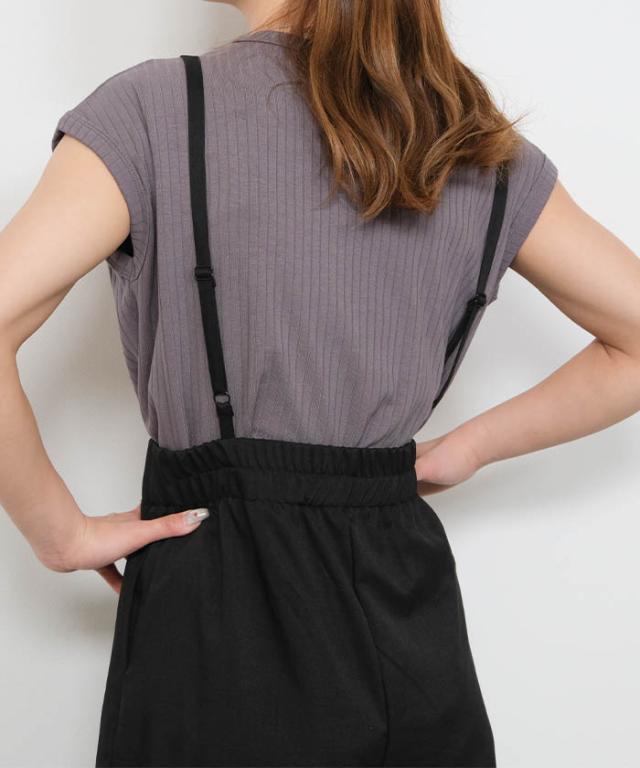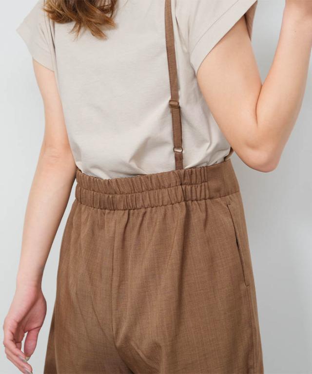 シワになりにくく履き心地抜群のリネンライクサスペンダー付きパンツ