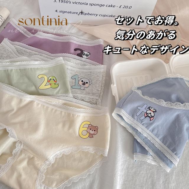 【5枚セット】 ショーツセット コットン プリント ショーツ レディース肌着 レキュラー 綿 女性 アンダーウェア 下着 パンツ おしゃれ 可愛い 補整 補正 キャラクター