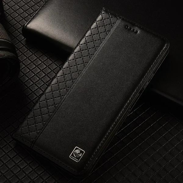 1.製品の特徴:牛革+グリッドパターン+ブラックバンパー。