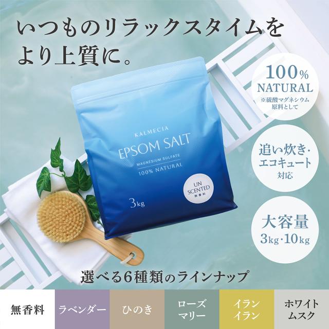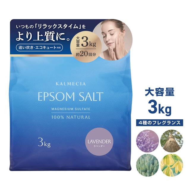 KALMECIA エプソムソルト 入浴剤 3kg ラベンダー ひのき ローズマリー イランイラン バスソルト 硫酸マグネシウム 追い炊き対応 計量スプーン付き 大容量 天然精油使用
