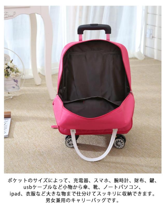 | 【3wayキャリーバッグ】:普通のキャリーバッグと比べて、実用性に優れた3way多機能キャリーバッグリュックはキラキラ登場します。キャリー、リュックとしても、手提げとしても使用できます。自分のお好みによって、使用方式を自由的に調節できます。 【バッグ仕様】:ポケットのサイズによって、充電器、スマホ、腕時計、財布、鍵、usbケーブルなど小物から傘、靴、ノートパソコン、ipad、衣服など大きな物まで仕分けてスッキリに収納できます。男女兼用のキャリーバッグです。 【高品質素材】:耐摩耗性に優れた丈夫なオックスフォード素材と高品質の金属製ジッパーを取り入れ、上品な質感と耐久性を兼ね備え、長くご愛用いただけます。また、縫製がしっかりしていて丈夫であり、耐久性に優れている、通気性、柔軟性と速乾性も良い、抗菌作用があり、長期間の使用でも色落ちしにくい。撥水機能も備え、雪や雨水など滲みにくく、汚れてもさっと拭き取れ、お手入れ楽々です。 【多段調節キャリバー&高品質キャスター】:アルミニウム製の超軽量のキャリバーは伸縮可能で、ご自分の身長に合わせて、スムーズな2段階調整が可能です。高弾性のゴムキャスターを採用し、より静かで耐摩耗性も向上しています。耐振性に優れるデザインで、荷物を入れて凸凹な路面でもスムーズで安定した移動を可能にします。 【様々なシーンで活躍】:シンプルなデザインで、男女年齢問わずご利用いただきます。旅行、出張、通学、合宿、アウトドア、遠足、ショッピング、お釣り、帰省、お出かけ、スポーツ、防災用など様々なシーンで活躍できます。母の日、父の日、誕生日、卒業日など祝日で、プレゼントとしてもオススメです。 | |