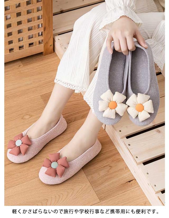 スリッパ かかと付き レディース ルームシューズ 花モチーフ 可愛い 滑り止め おしゃれ 室内履き スリッポン 入院 かかと 婦人 学校 靴 くつ シューズ 人気 マタニティ 産後 上履き 洗える 送料無料