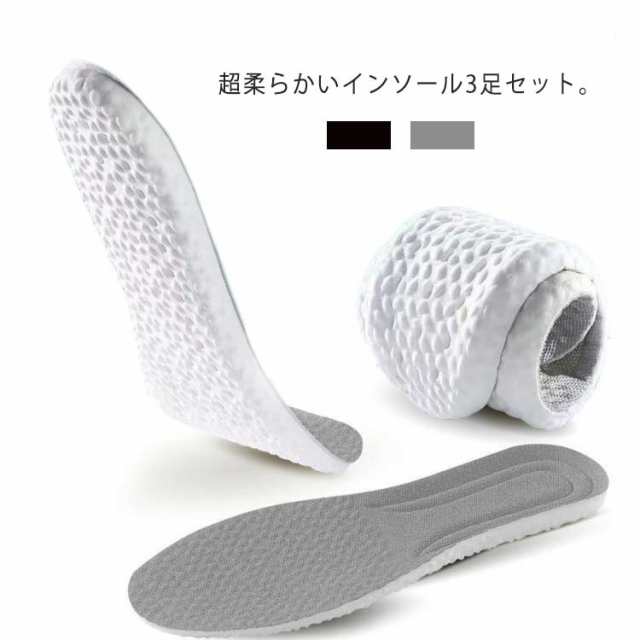 インソール 中敷き 3足セット クッション ソフト 衝撃吸収 反発 土踏まず 扁平足 偏平足 かかと サポーター 超柔らかい 疲れにくい スニーカー パンプス 革靴 靴 クッション サイズ調整可能 男女兼用 通気性 消臭