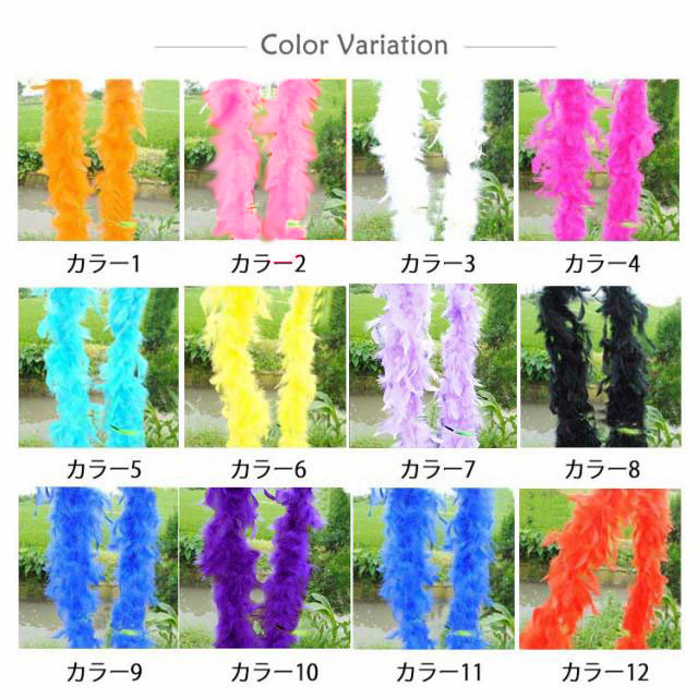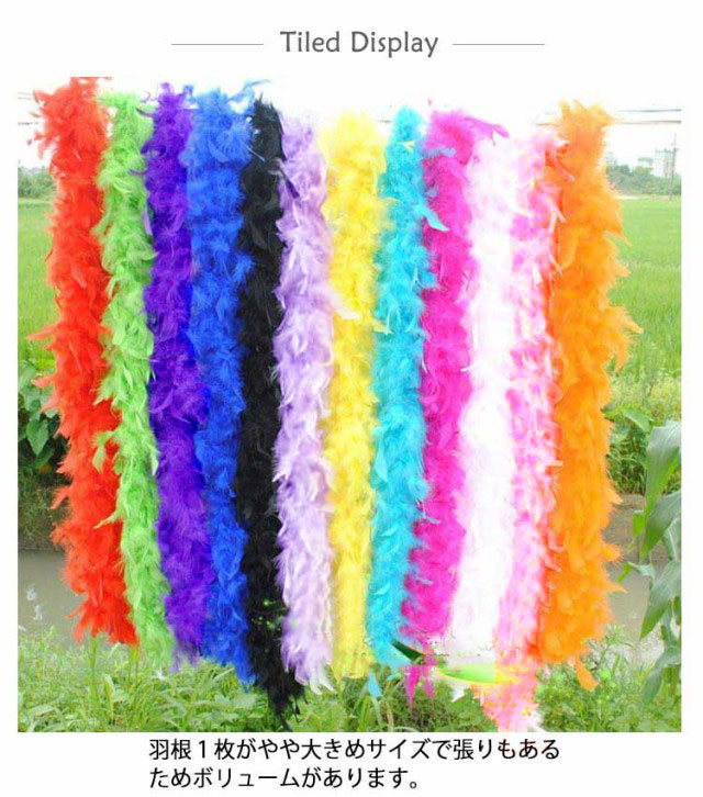 | ボリューム感がたっぷりあるゴージャスなマラボー。 羽根1枚がやや大きめサイズで張りもあるためボリュームがあります。 長さがあるので首に巻いたり、腕にかけたり様々な使い方ができます。 ふわふわゴージャスなマラボーはステージアイテムの定番♪ シンプルなドレスなどにプラスして華やかさをプラス出来ます。 | |