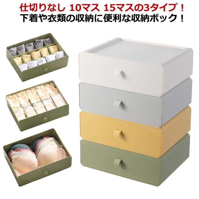 | 仕切りなし 10マス 15マスの3タイプ! 下着や衣類の収納に便利な収納ボック | |