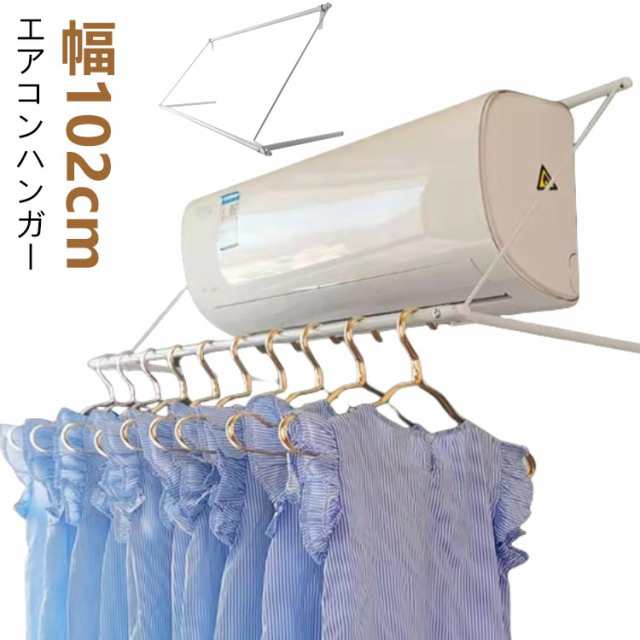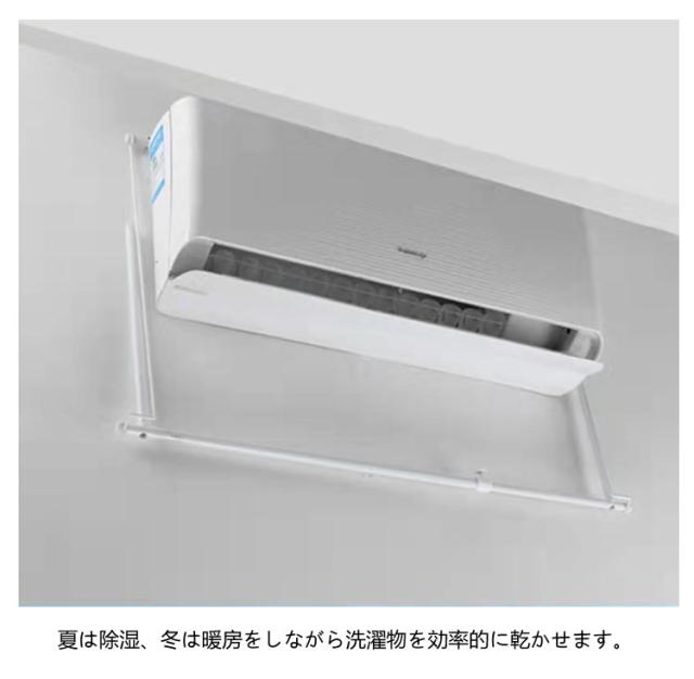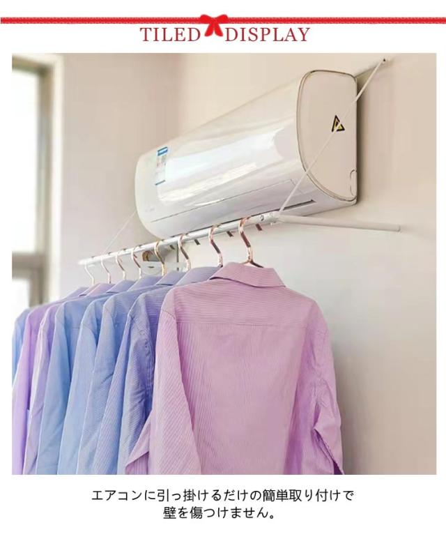 | 幅102cm エアコンハンガー エアコンに引っ掛けるだけの簡単取り付けで壁を傷つけません。 夏は除湿、冬は暖房をしながら洗濯物を効率的に乾かせます。 使わない時は、竿を通したまま折りたたんで収納できるので、お部屋もスッキリ。 シンプルなデザインなのでどんなお部屋にもぴったりです! | |