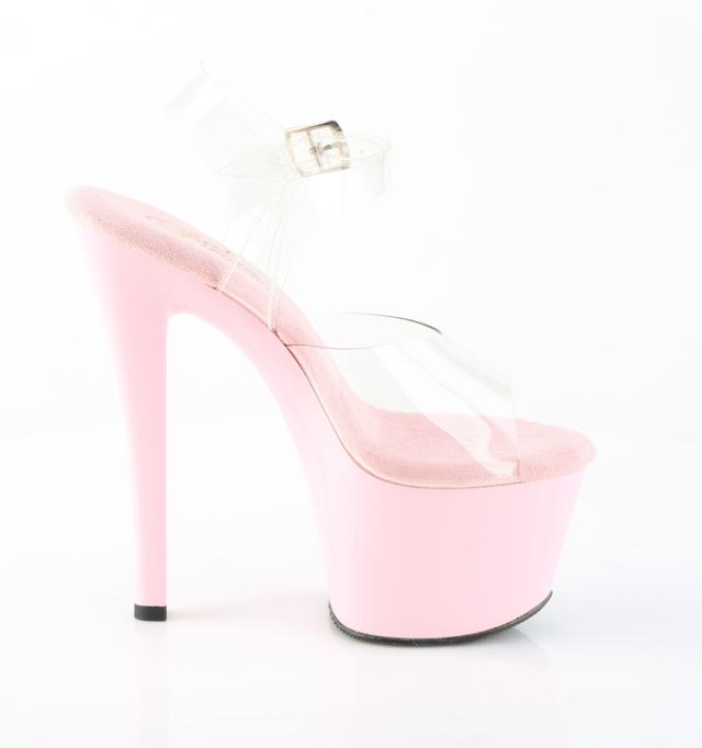 Pleaser(プリーザー) SKY-308 アンクルストラップ厚底サンダル 7インチヒール クリア/ベビーピンク◆取り寄せ