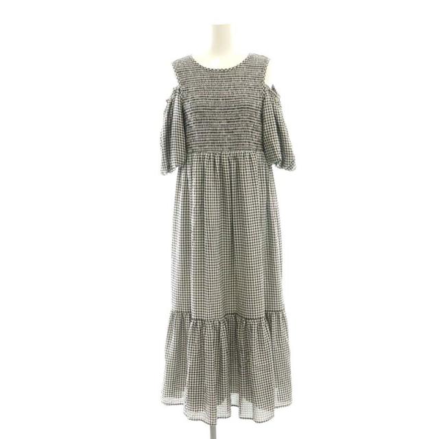 【中古】クイーンズコート 2WAYギンガムチェックワンピース オープンショルダー 1 ブラック ホワイト レディース