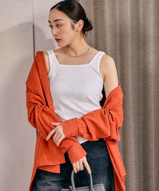 前後2wayで着用できるスクエア&クルーネックタンクトップ