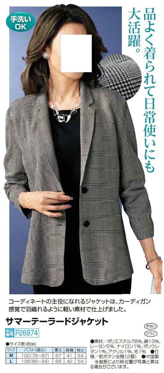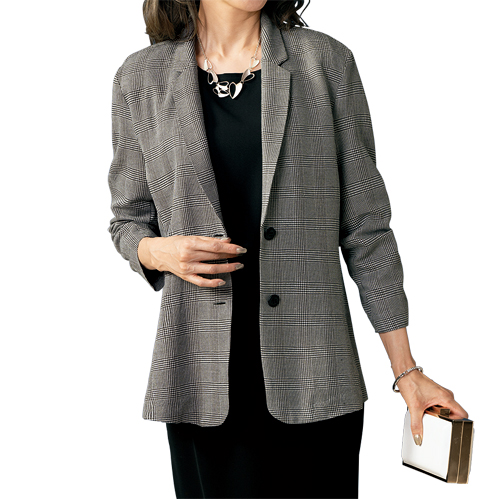 サマーテーラードジャケット グレー テーラードジャケット サマージャケット レディース 婦人服 ミセス シニア 女性 グレンチェック チェック柄 かっこいい アウター シンプル シニアファッション 40代 50代 60代 70代 80代 90代 母の日 お母さん 春夏 nss p26874