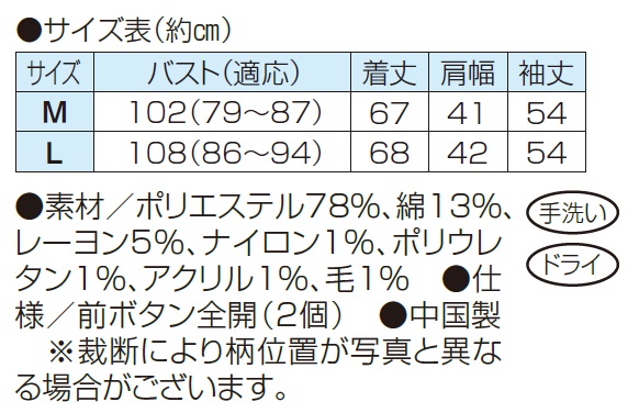 ●素材/ポリエステル78%、綿13%、レーヨン5%、ナイロン1%、ポリウレタン1%、アクリル1%、毛1%