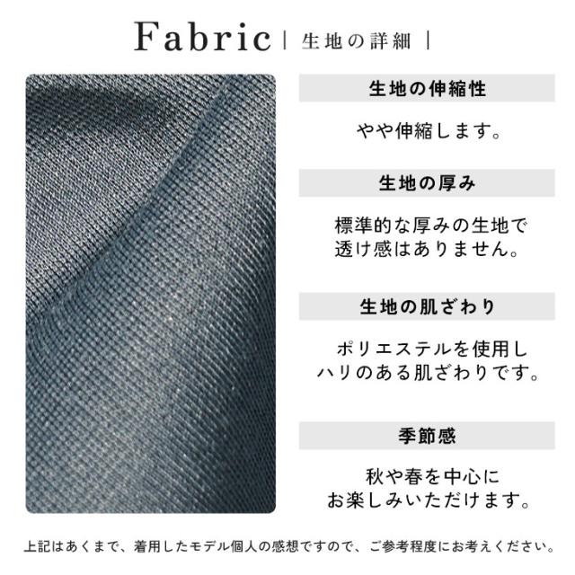 上品な光沢感と肌に柔らかく馴染む質感が魅力的な「とろみ素材」を使用。洗濯してもシワになりにくく、アイロン不要なのでお手入れが簡単。忙しい毎日でも使える時短も美しさも叶えてくれる欲張り素材です。