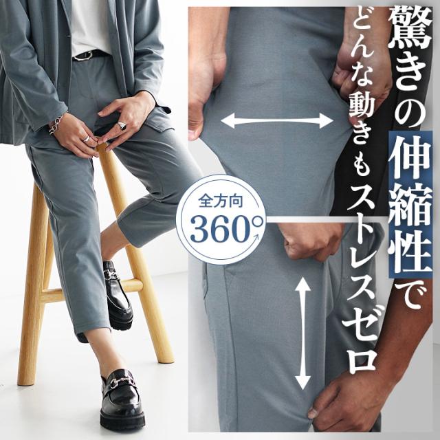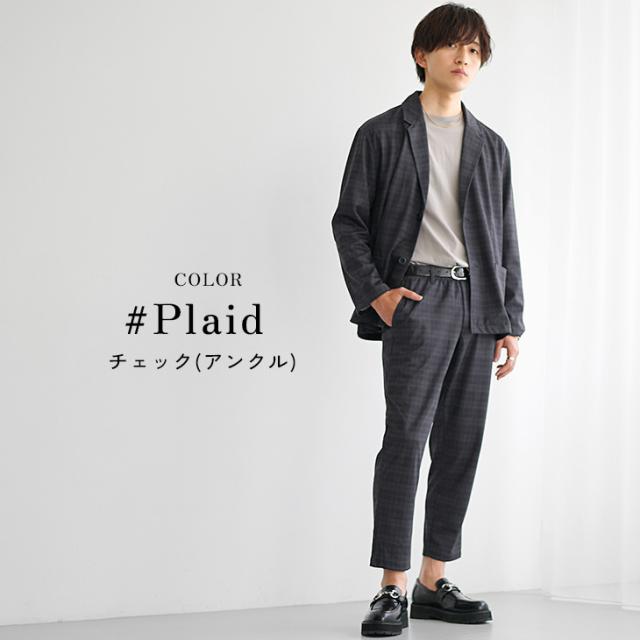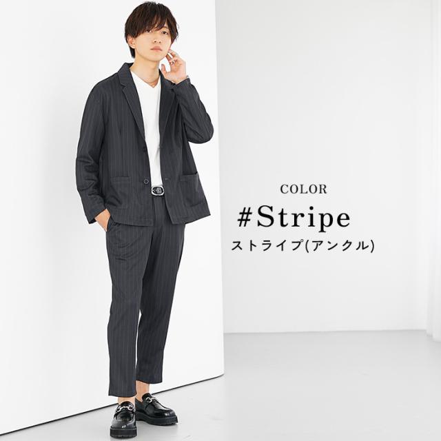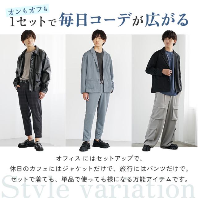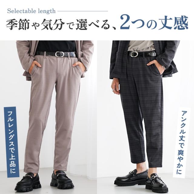 上品な印象の「フルレングスタイプ」と足元をすっきりと魅せてくれる「アンクルタイプ」の2種類から選べるので、カジュアルなシーンからオフィスカジュアルまで幅広く活躍するセットアップです。