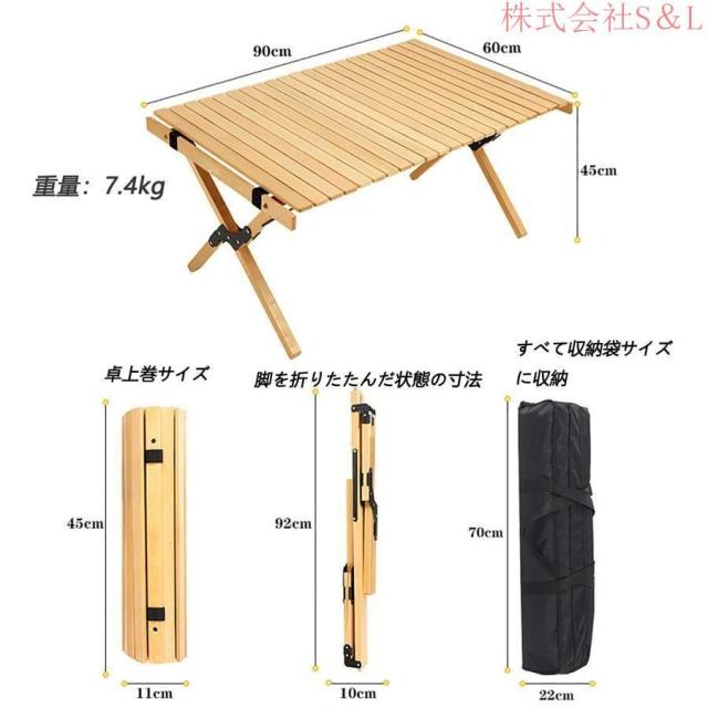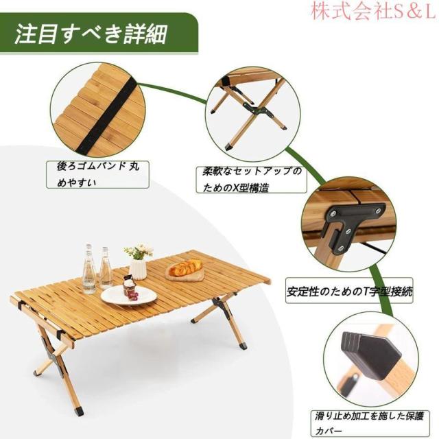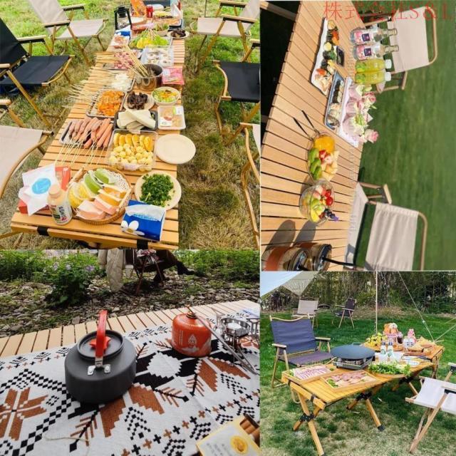 キャンプ テーブル 折りたたみ アウトドア テーブル 木製 ロールアップキャンプテーブル ピクニック、レジャー、キャンプに ピクニック用のテーブル 高さ45cm 収