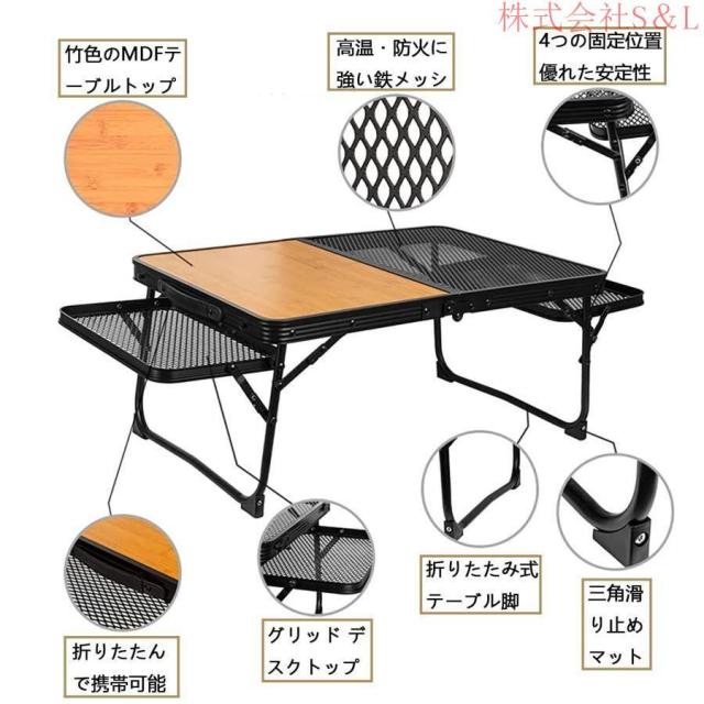 キャンプ テーブル 折りたたみ アウトドア テーブル バーベキュー テーブル メッシュ サイドテーブル付き キャンプ テーブル コンパクト 軽量 メッシュテーブル